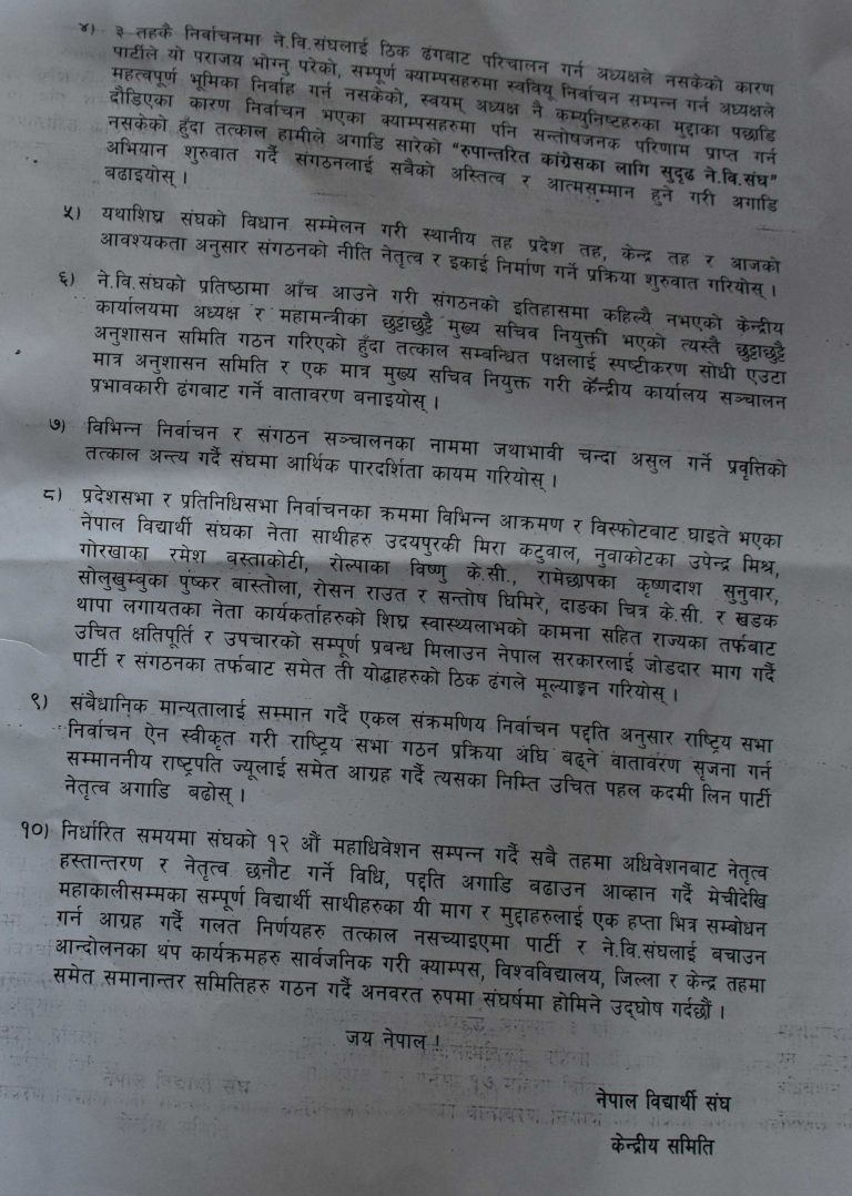 कांग्रेसले केन्द्रीय समितिबाट बुधबार गरेका निर्णयहरू