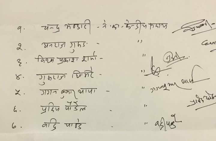 विज्ञप्ति जारी गर्नेमा कांग्रेसका केन्द्रीय सदस्य चन्द्र भण्डारी, धनराज गुरुङ, विश्वप्रकाश शर्मा, गुरुराज घिमिरे, गगन थापा, प्रदीप पौडेल र बद्री पाण्डे रहेका छन् ।