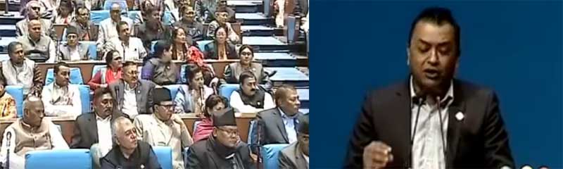 त्यसपछि पालो आयो युवा नेता थापाको । जब थापाले संसदमा कम्युनिष्ट प्रधानमन्त्रीका एकएक अभिव्यक्ति र वाम गठबन्धनको एकीकृत घोषणापत्रलाई स्मरण गराउँदै वक्तव्य दिए कम्युनिष्टहरू हेरेको हेरै ।