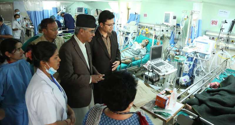 देउवाद्वारा घाइतेहरूसँग अस्पतालमा भेट