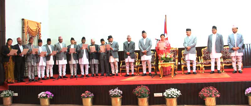 काठमाडौं । प्रधानमन्त्री केपी ओलीले मन्त्रिपरिषद विस्तार गरेका छन् । थपिएका सदस्यहरूलाई शुक्रबार साँझ पद तथा गोपनीयताको शपथ ग्रहण गराइएको छ ।