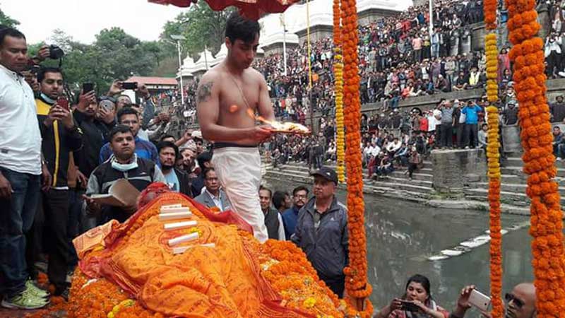 काठमाडौं । नेपाली कांग्रेसका खम्बा स्वर्गीय खुमबहादुर खड्काको आइतबार साँझ पशुपति आर्यघाटमा अन्तिम दाहसंस्कार गरिएको छ । योसँगै खड्काले सबैलाई सुनो बनाएर गएका छन् ।