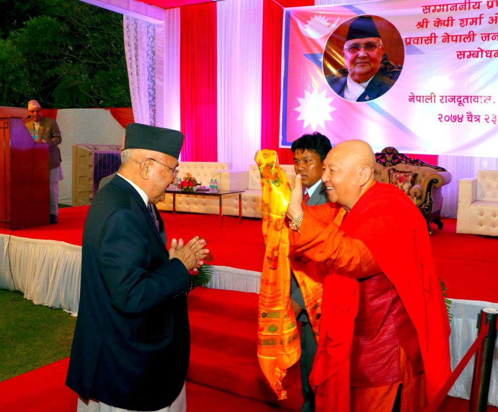 काठमाडौं । नयाँ दिल्लीस्थित नेपाली राजदूतावासमा प्रधानमन्त्री केपी शर्मा ओलीलाई स्वागत गर्ने बौद्ध भिक्षु मास्टर कर्मा तन्पाइ ग्याल्सेनको पहुँच, प्रभाव र सम्बन्ध स्वतन्त्र तिब्बतको माग गर्दै निर्वासनमा रहेका धर्मगुरु दलाई लामासम्म रहेको खुलासा भएको छ ।
