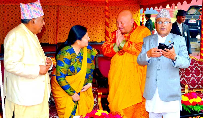 त्यसैगरी नयाँ संविधान बमोजिम मुलुकको नयाँ राष्ट्रपति पदमा विद्यादेवी भण्डारी पुनः निर्वाचित भएपछि भण्डारीले पद तथा गोपनीयताको सपथ लिएपश्चात फागुन ३० गते (मार्च १४)मा शीतल निवास पुगी दोस्रो कार्यकालको सफलता र उनको सुस्वास्थ्यको कामना गरेका थिए ।