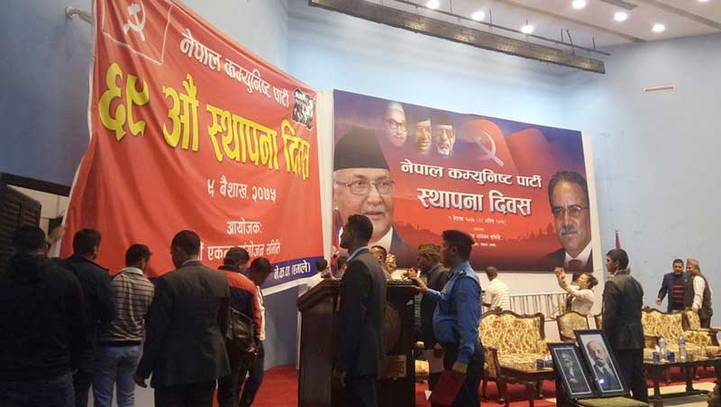नेपाल कम्युनिष्ट पार्टीको स्थापना दिवसको छुट्टै ब्यानर पनि राखिएको छ । मञ्चमा माक्र्स र लेनिनको तस्बिरलाई टेबुलमा राखिएको छ ।