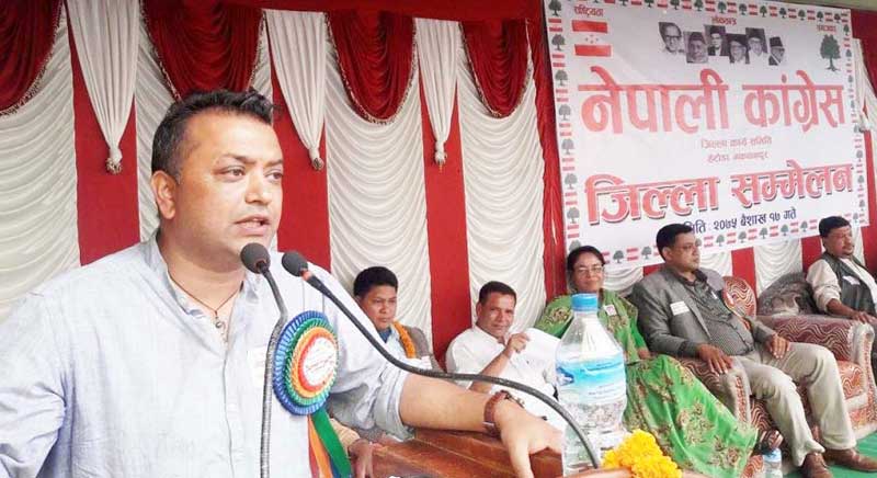 हेटौँडामा सोमबार नेपाली कांग्रेसको जिल्ला सम्मेलनलाई सम्बोधन गर्दै युवा नेता थापाले कांग्रेस वर्तमान कम्युनिस्ट सरकारलाई खबरदारी गर्नुपर्ने बताए । ‘सरकार अधिनायकवादतर्फ अग्रसर हुन थालेको संकेत गरेको छ’, थापाले भने, ‘जनताले बनाएको संविधान विपरित हुने कुनै पनि ओली सरकारविरुद्ध हामी सडकमा उत्रन तयार छौँ ।’