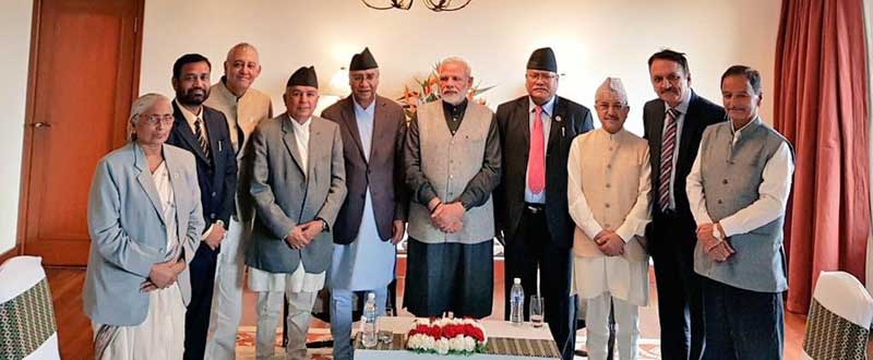 एमालेका अध्यक्ष समेत रहेका प्रधानमन्त्री केपी ओली र माओवादी केनद्रका अध्यक्ष पुष्पकमल दाहाल प्रचण्डले जस्तो कांग्रेसका नेताहरूले मोदीलाई एक्लै नभेटेका हुन् ।