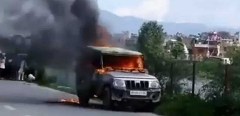 ड्राइभरलाई गाडीबाट ओरालेर पाँच जनाको समूहले मट्टितेल छर्किएर आगो लगाएका थिए।