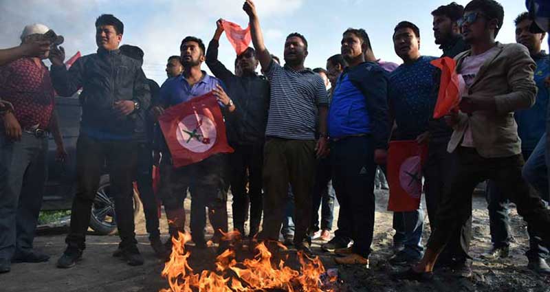 हैरान बनायो नेविसंघले सरकारलाई, जलायो ओलीको पुत्ला