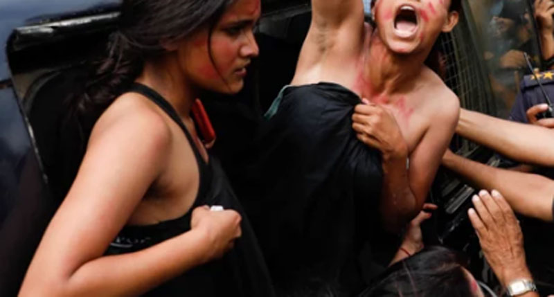 युवती र महिलाहरूले अर्धनग्न भएर प्रदर्शन गरेपछि उनीहरूलाई प्रहरीले पक्राउ गरेको छ ।