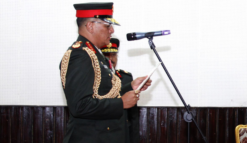 नवनियुक्त प्रधान सेनापति थापाले सैनिक ऐन, २०६३ को दफा ९ को उपदफा (२) बमोजिम आफ्नो पदको पद तथा गोपनीयताको शपथ ग्रहण गरेको विज्ञप्तिमा उल्लेख छ ।