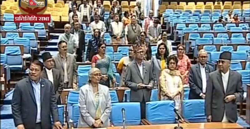 त्यसपछि कांग्रेसका सभापति एवम् संसदीय दलका नेता शेरबहादुर देउवासहितका सांसदहरू आ–आफ्नो सिटबाट उठेर सदन अवरोध गरेका थिए ।