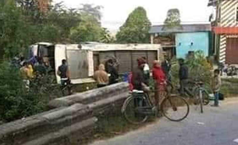 लक्ष्मी पूजाको दिन ड्याम्म पल्टियो बस