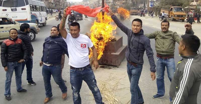 नेविसंघले ओलीको पुत्ला जलायो, सरकारलाई झुकाइ छाड्ने