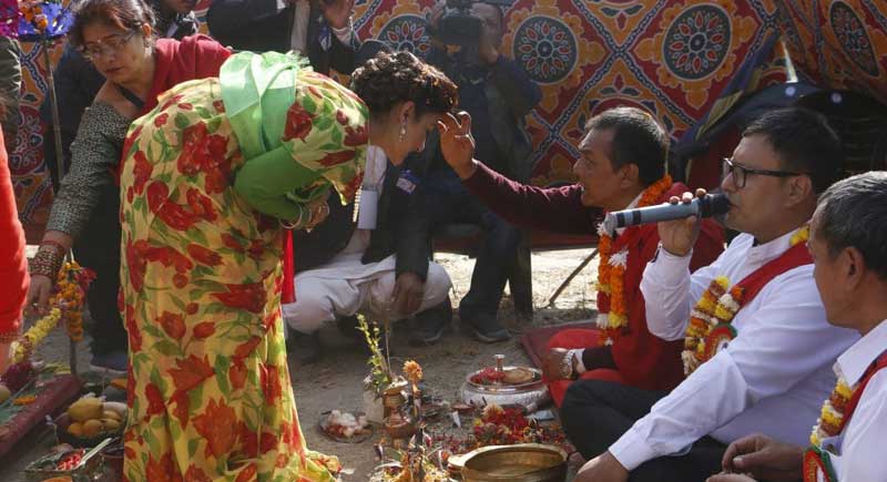 सानेपास्थित बागमती नदी किनारमा शनिबार सर्वसाधारणसँगै सामूहिक पूजाअर्चना गरेकी हुन् । पूजा गर्ने बेला उनले विधिपूर्वक गरेको प्रत्यक्षदर्शीले बताए ।