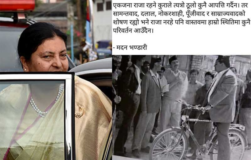 नेता नेपालले विद्यादेवीको विलासी जीवनसँग मदन भण्डारीको नाम जोड्न नहुने बताएका हुन् । नेपालले व्याङगात्मक शैलीमा राष्ट्रपति विद्यादेवीको आलोचना गरेका छन् ।