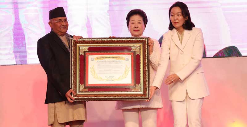 फेडेरेसनकी अध्यक्ष हाक जा हान मुनले प्रधानमन्त्री ओलीलाई उक्त पुरस्कार प्रदान गरेकी थिइन् ।
