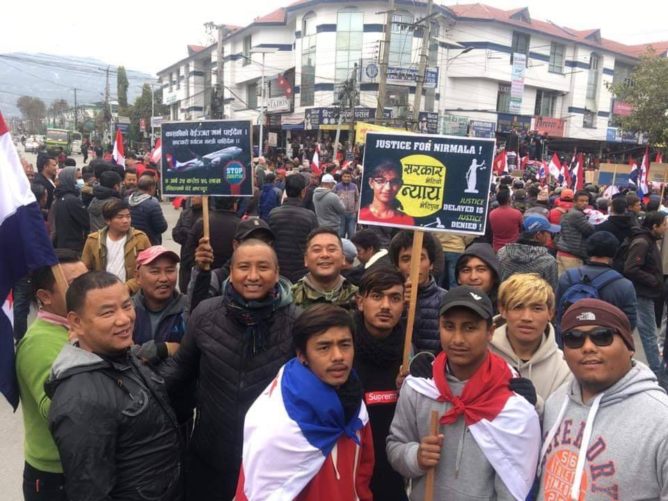 तरुण दलको विरोध र्यालीमा सहभागीहरूले सुरक्षाका लागि खटिएका नेपाल प्रहरीलाई ‘हाम्रो सुरक्षा गर्नुपर्दैन निर्मला पन्तका बलात्कारी र हत्यारालाई खोज्न जाउ’ भनेका थिए ।