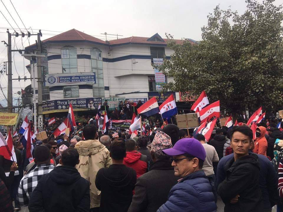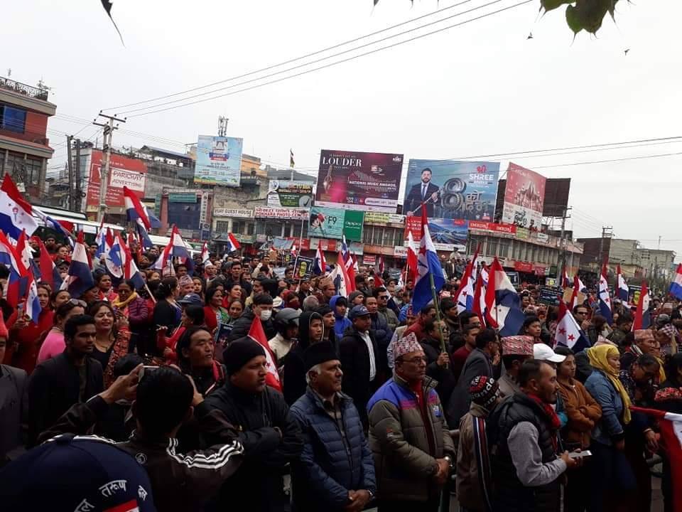 सरकारविरुद्धको प्रदर्शनका क्रममा ‘अधिनायकवादी कम्युनिस्ट सरकार यो के दम्भ हो । राणा–राजा फालेको स्मरण गर, नत्र अब कम्युनिस्ट सरकार पनि फालिन्छ’ जस्ता नारा लगाएका थिए । विरोध र्यालीमा सहभागीहरूले अधिनायकवादी कम्युनिस्ट सत्तालाई अब लतारेल फाल्ने नारावाजी समेत गरेका थिए ।