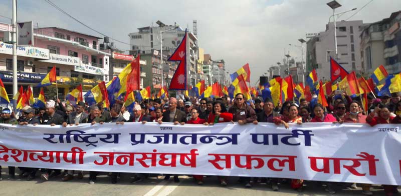 बालुवाटारस्थित प्रधानमन्त्री निवासमा ज्ञापनपत्र पेश गरेपछि राप्रपाले ¥याली सहित शान्तिपूर्ण जनसंघर्ष कार्यक्रमको शुभारम्भ गरेको छ ।