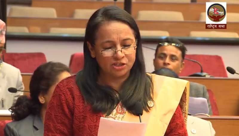 उनले संस्कृति, पर्यटन तथा नागरिक उड्डयनमन्त्री अधिकारीले काष्ठमण्डप पुनर्निर्माणमा भैरहेकोे काम र कारबाहीका विषयमा राष्ट्रिय सभालाई जानकारी दिनुपर्ने माग गरिन् ।