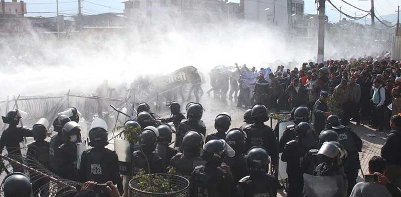 शिक्षकले जबरजस्ती गरेपछि प्रहरीले आश्रुग्याँस तथा पानीका फोहोरा हानेका थिए ।