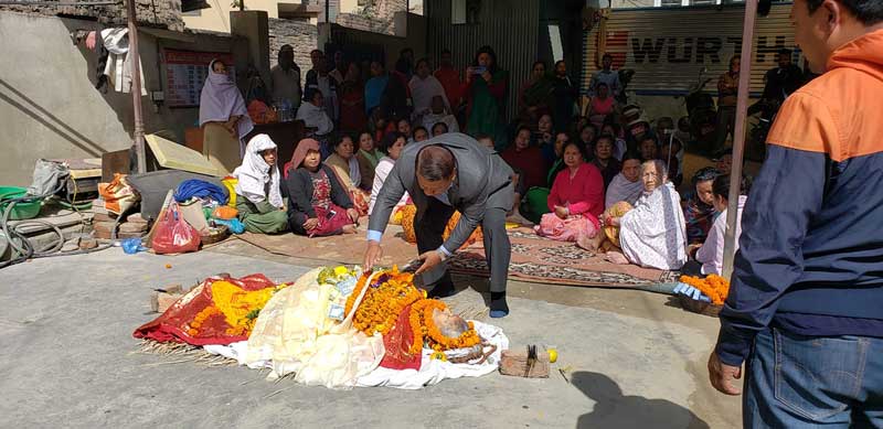 कांग्रेसका नेता प्रकाशमान सिंह सहितका नेताहरूले निवासमा पुगेर डंगोलकी आमाको पार्थिव शरीरमा अन्तिम श्रद्धाञ्जलि दिएका छन् ।