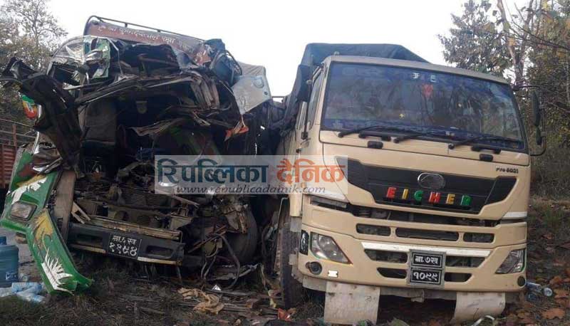 दुर्घटनामा २ जना गम्भीर घाइते भएका छन् । पूर्वपश्चिम महेन्द्र राजमार्गअन्तर्गत कावासोतीको खरकट्टा जंगलमा दुई ट्रक एक आपसमा ठक्कर खाँदा दाङ घर भएका अनराम राखलको घटनास्थलमै मृत्यु भएको हो ।
