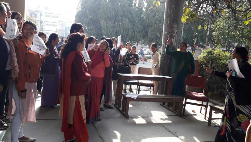 काठमाडौं । त्रिभुवन विश्व विद्यालयअन्तर्गतका आंगिक क्याम्पसहरू महिला प्रमुखको माग गरेर महिला प्रध्यापकहरूले आन्दोलन गरेका छन् ।