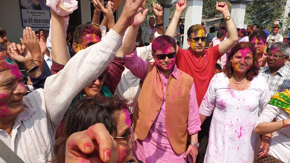 मोरङ कांग्रेसका नेता तथा कार्यकर्ताहरूले कोइराला परिवारसँग होली खेल्न पाउँदा खुसी व्यक्त गरेका छन् ।