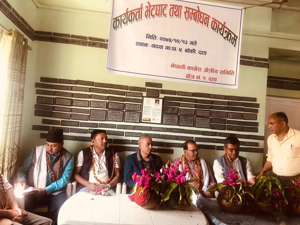 बुधबार दाङ जिल्लाको देउखुरीस्थित गढवामा कार्यकर्ता भेटघाट तथा सम्बोधन कार्यक्रममा नेताहरूले कांग्रेसका गाउँका कार्यकर्ताहरूमा अहिले पनि उत्तिकै उर्जा आफूहरूले पाएको बताए ।