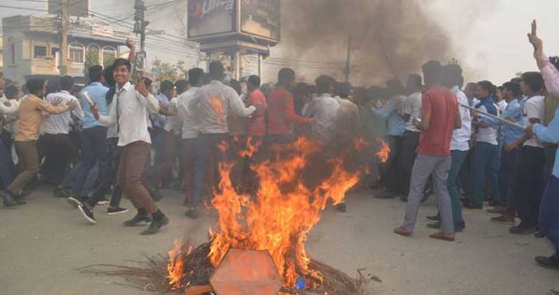 उक्त विषयको परीक्षा रद्द गरी पुनः अर्को दिन परीक्षा हुने भन्ने समाचार आएपछि विद्यार्थीले विरोध प्रदर्शन गर्ने क्रममा विभिन्न स्थानमा तोडफोड गरेर सामान्य क्षति पु¥याएको प्रहरीको विज्ञप्तिमा उल्लेख छ ।