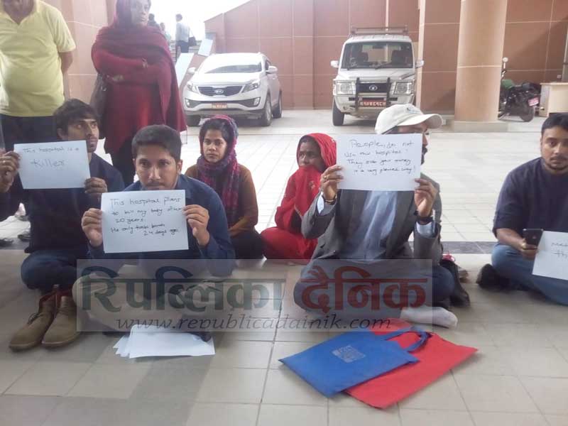 मेडिसिटी अस्पताल र डा.श्रेष्ठको लापरबाहीले ‘डाउन सिन्ड्रम’ भएको बच्चा जन्मिएपछि साह र उनका पति राजेश महतो तथा आफन्तले अस्पतालमा धर्ना दिएका छन् ।