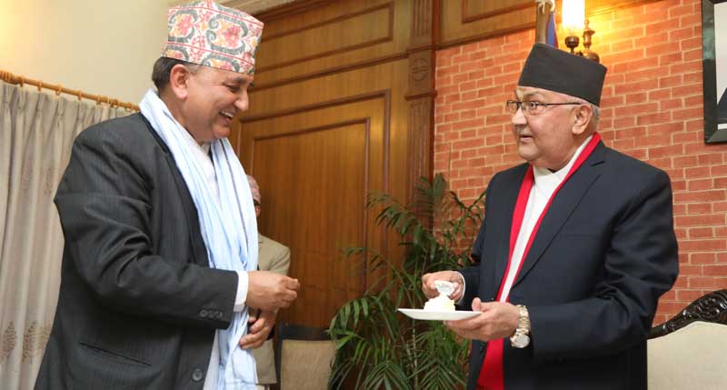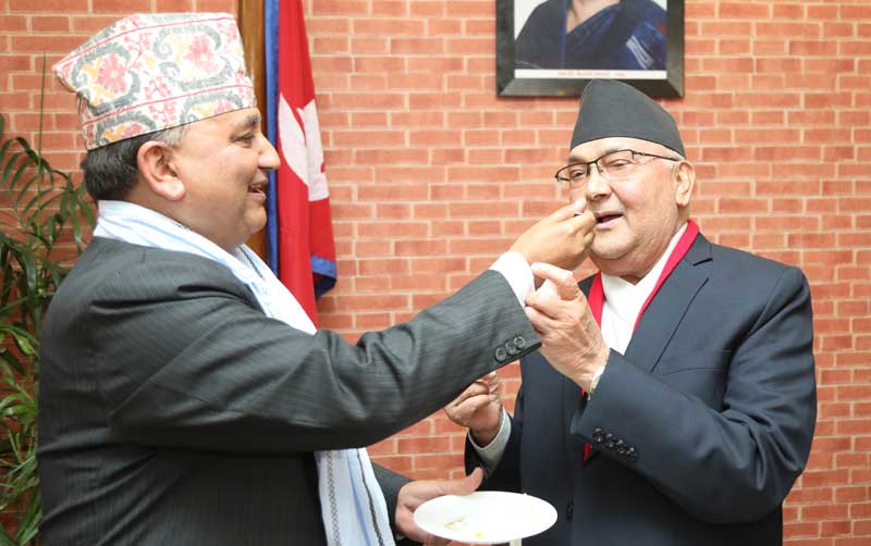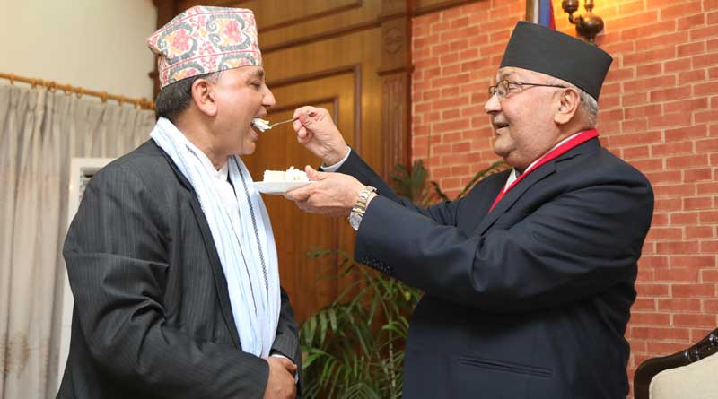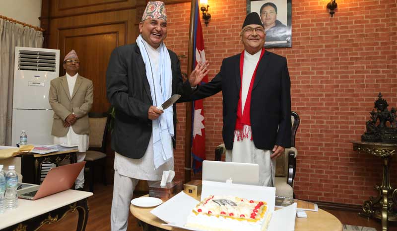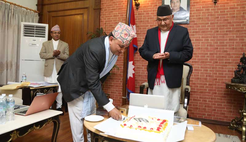सोमबार अपरान्ह प्रधानमन्त्री ओलीको सरकारी निवास बालुवाटारमा बोलाइएको मन्त्रिपरिषद् बैठकको शुरुमै ओलीले बडेमानको महँगो केक काटेर उपप्रधानमन्त्री एवम् रक्षामन्त्री पोखरेललाई खुवाएका थिए ।