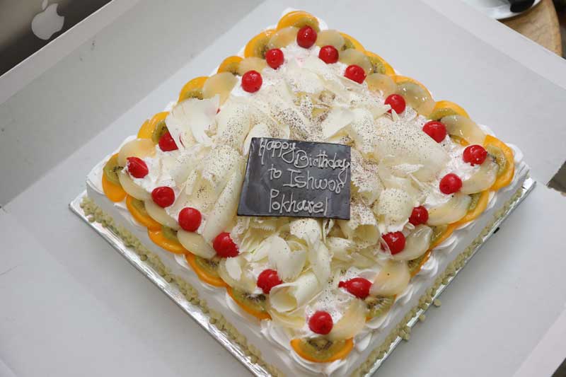बालुवाटारको बैठक हलमा मन्त्री पोखरेलको जन्मोत्सव ठूलो केक काटेर मनाइएको हो । प्रधानमन्त्री ओली आफैले उपप्रधान एवम् रक्षामन्त्री पोखरेलको जन्मोत्सव मनाउन कार्यक्रम राखेका थिए ।