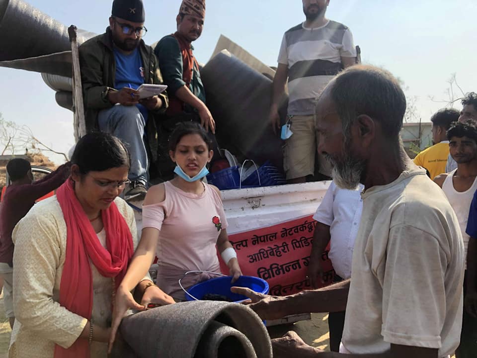 हेल्प नेपाल नेटवर्कले बाल्टिन, जग, म्याट्रेससहितका सामाग्री वितरण गरेको थियो ।