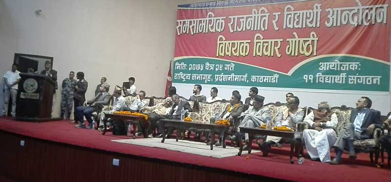 नेपाल विद्यार्थी संघ (नेविसंघ)सहितका प्रतिपक्षमा रहेका दलहरू आवद्ध ११ विद्यार्थी संघ/संगठनहरूले शुक्रबार काठमाडौंमा ‘समसामयिक राजनीति र विद्यार्थी आन्दोलन’ विषयक विचार गोष्ठिमा ओली सरकारविरुद्ध कांग्रेसको नेतृत्वमा आन्दोलन घोषणाको प्रस्ताव आएको हो ।