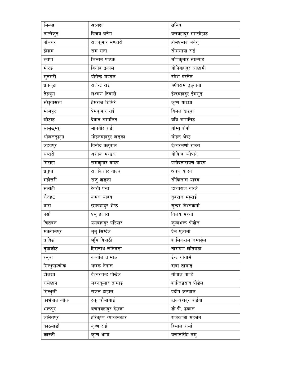 पूर्वएमाले ४४ र पूर्वमाओवादी ३३ जिल्लामा अध्यक्ष (नाम)