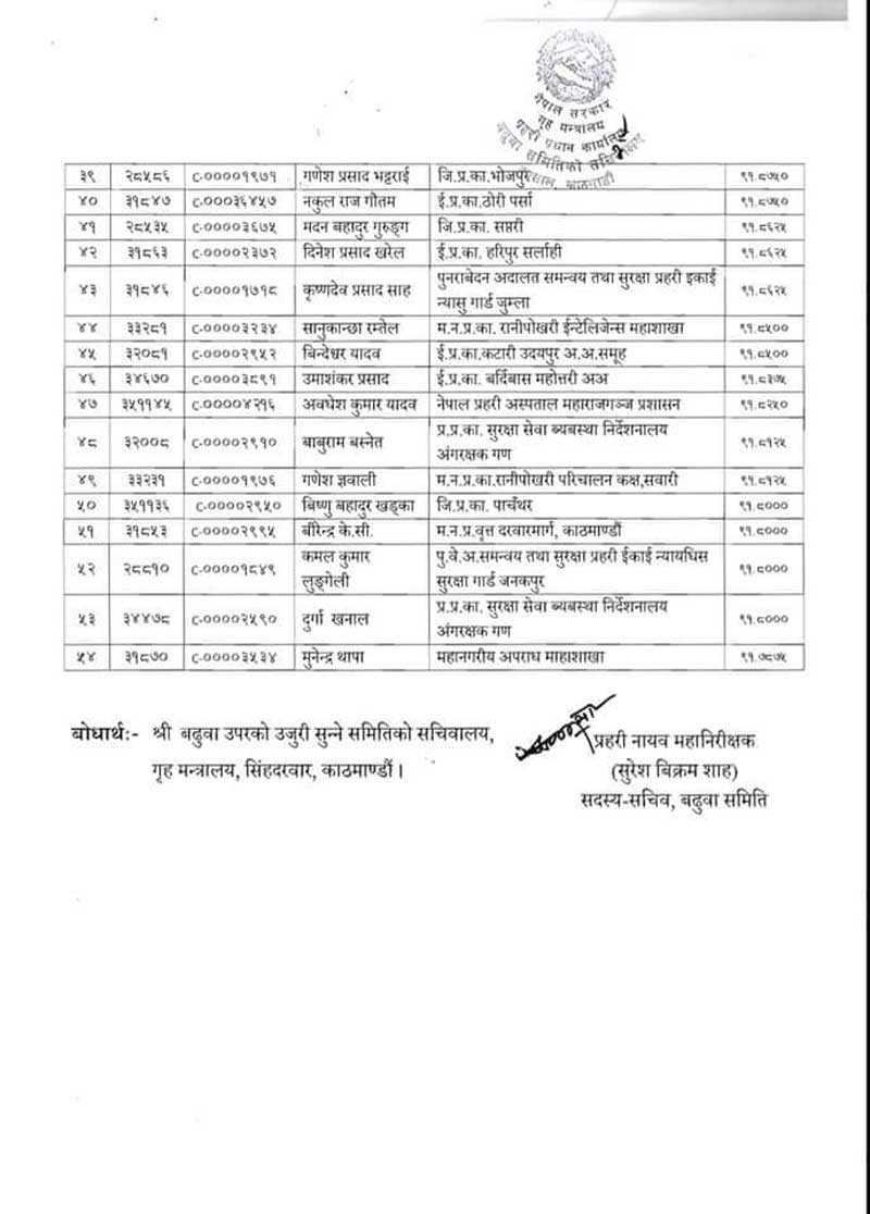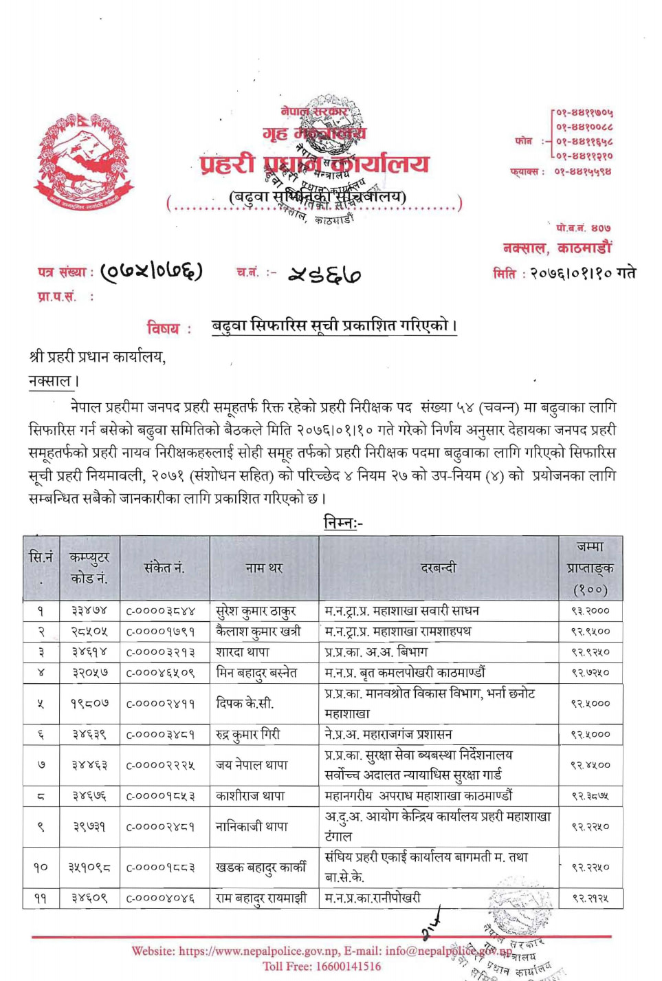 प्रहरीका ५४ सईहरू निरीक्षक बढुवामा सिफारिस (नाम)