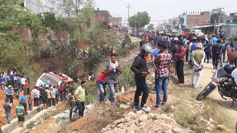 तुलसीपुरबाट बिराटनगरतर्फ जाँदै गरेको ना ५ ख २२३४ नम्बरको बस अनियन्त्रित भई सडकबाट अन्दाजी ६ मिटर तल खसेको थियो । घाइतेको राप्ती प्रादेशिक अस्पताल तुलसीपुरमा उपचार भइरहेको छ । अन्य यात्रुहरूको अवस्था सामान्य रहेको छ ।