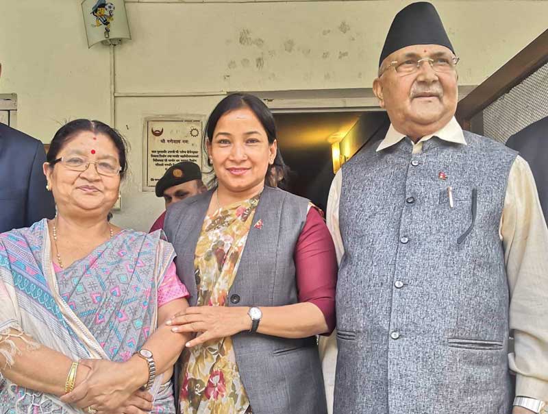 प्रधानमन्त्री ओली आधा घण्टा व्यारेकमा बसेका थिए । प्रधानमन्त्री ओलीसँग नेकपाका महासचिव विष्णु पौडेल र प्रधानमन्त्री पत्नी राधिका शाक्य रहेका थिए ।