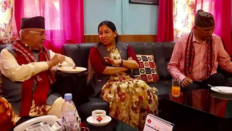 प्रधानमन्त्री ओलीले त्यस क्रममा ब्यारेकभित्रै भरतपुर महानगरपालिकाकी मेयर रेनु दाहालसहितका पदाधिकारीसँग भेटघाट गरेका थिए ।