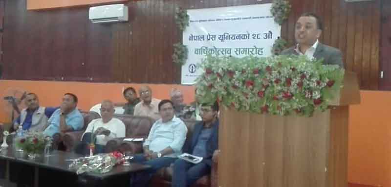 नेपाल प्रेस युनियनको २८औं स्थापना दिवसका अवसरमा काठमाडौंमा आयोजित कार्यक्रमलाई सम्बोधन गर्दै थापाले विप्लवको प्रवक्ता बन्ने गृहमन्त्रीलाई पदमा बस्ने अधिकार नरहेको बताए ।