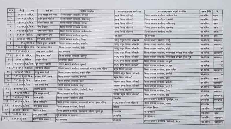दुई दर्जन प्रमुख जिल्ला अधिकारहरूको सरुवा