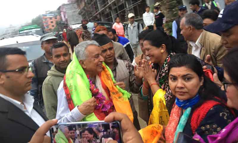 चरिकोट । नेपाली कांग्रेसका वरिष्ठ नेता रामचन्द्र पौडेललाई दोलखा जिल्लाको सदरमुकाम चरिकोटमा युवा विद्यार्थीले भव्य स्वागत गरेका छन् ।