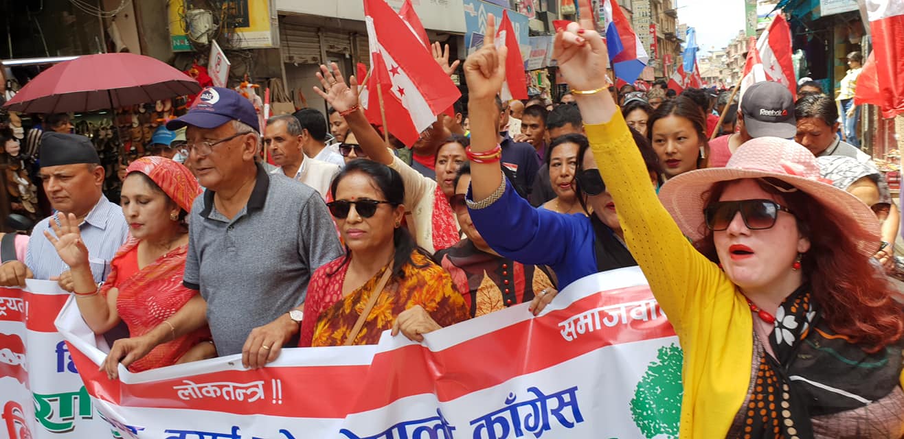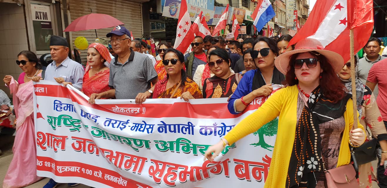 ललितपुरको मंगलबजारबाट शुरू भएको नेपाली कांग्रेसको र्याली कम्युनिस्ट सरकारविरुद्ध नारावाजी गर्दै लगनखेलमा पुगेर सभामा परिणत भएको युवा नेता मीनकृष्ण महर्जनले जानकारी दिए । उनका अनुसार र्यालीमा हज्जारौँको सहभागिता रहेको थियो ।