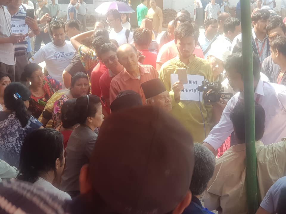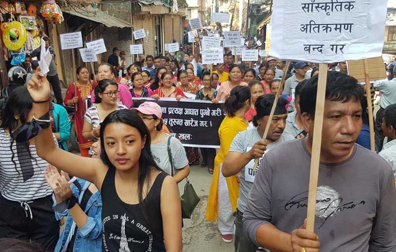 ज्यापू महागुठी नेवाः केन्द्रीय समितिको आव्हानमा बसन्तपुर दरबार क्षेत्रमा विरोध प्रर्दशन गरिएको हो । प्रदर्शनका क्रममा कम्युनिस्ट सरकारविरुद्ध नारावाजी गरिएको थियो ।