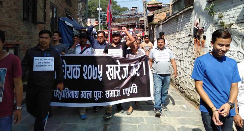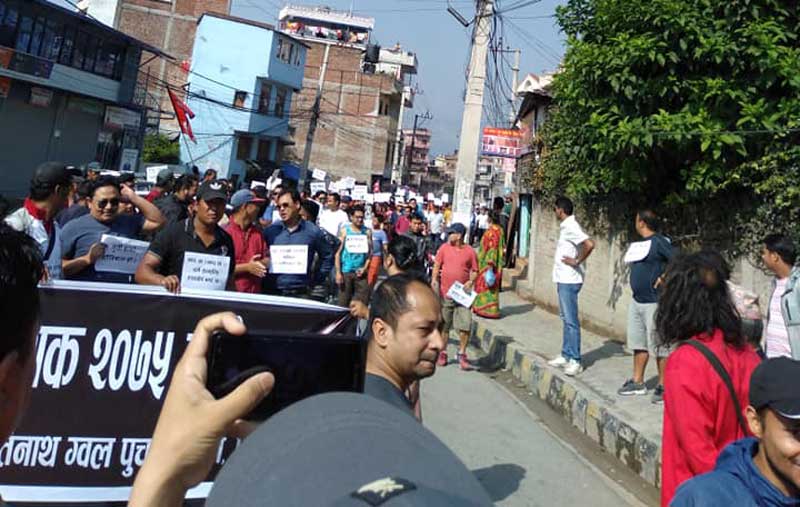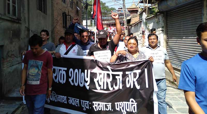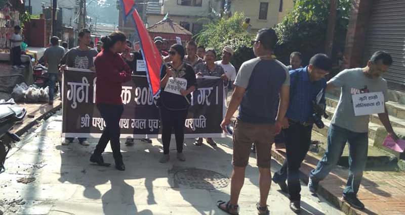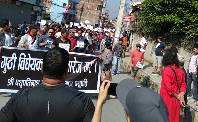 कम्युनिस्ट सरकारले गुठी विधेयक ल्याएर धर्म, संस्कृति र परम्परा मास्न खोजेको भन्दै कांग्रेसका नेता तथा कार्यकर्ता र स्थानीयले प्रदर्शन गरेका हुन् ।