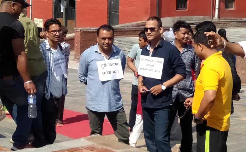 काठमाडौं । नेपाली कांग्रेसका युवा नेता एवम् सांसद गगन थापाको नेतृत्वमो गुठी विधेयकको विरोधमा काठमाडौं क्षेत्र नम्बर चारमा प्रदर्शन गरिएको छ ।