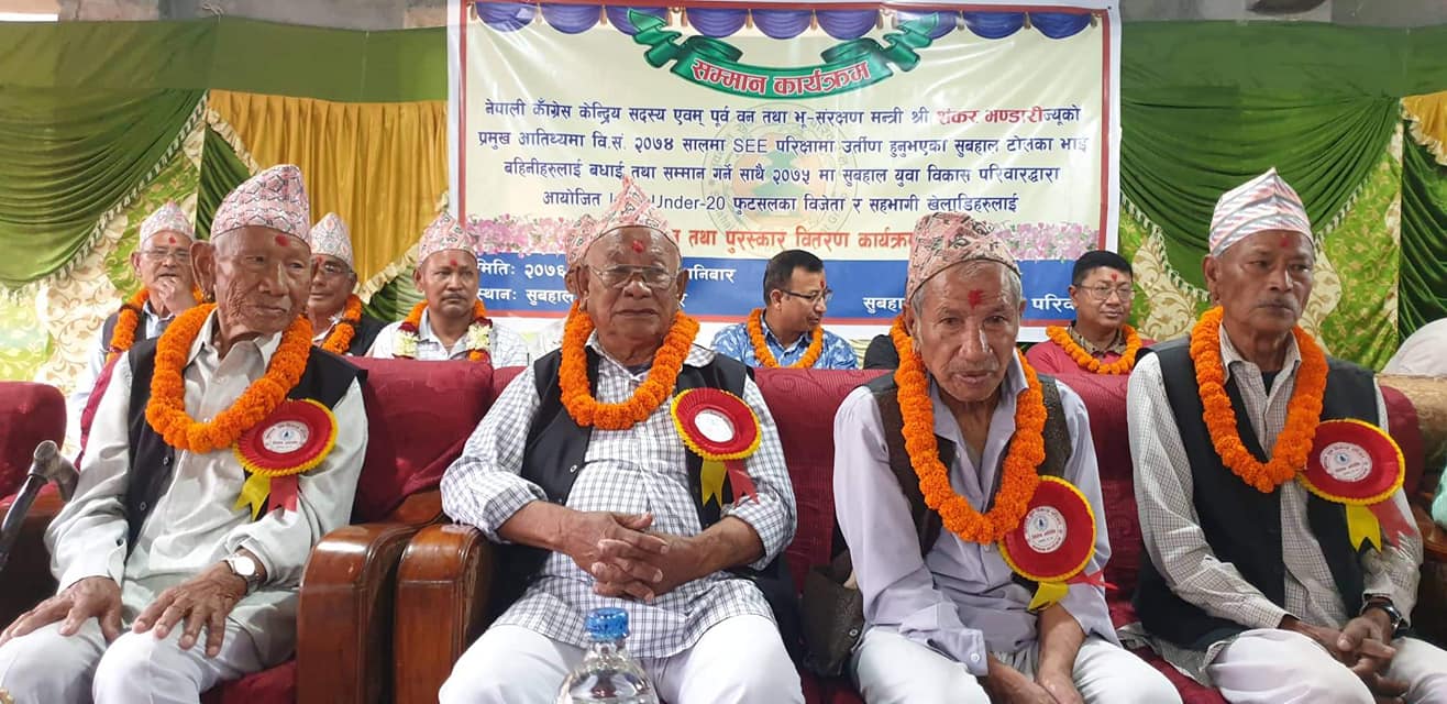 कार्यक्रममा सुबहालका एसईईमा राम्रो अंक लिएर उत्तीर्ण गरेका विद्यार्थी र जेष्ठ नागरिकहरूको सम्मान गरिएको थियो ।